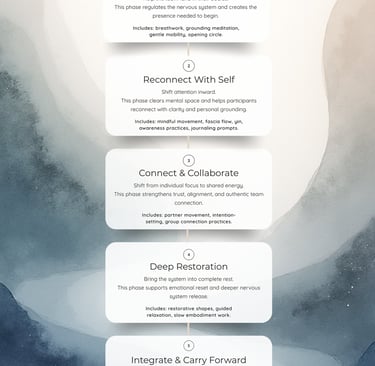 We design a space where your team can settle, breathe, and return to themselves — without the weight of pressure, performance, or expectations.